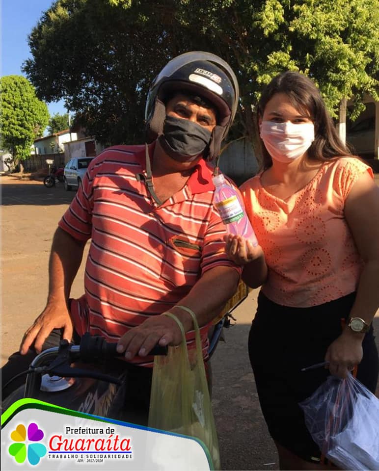 A secretaria municipal de saúde de Guaraíta, durante essa pandemia do Coronavírus, já fizeram e estão fazendo a distribuição de milhares de máscaras e álcool em gel 70%. E um fato interessante que chamou a atenção da população, é que a equipe da saúde fizeram também nessa terça feira 02/06/20 a distribuição de álcool em gel e máscaras de casa em casa a cada cidadão Guaraitense.